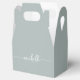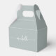 Boîte de faveur personnalisée élégante minimaliste moderne avec nom en écriture cursive et monogramme de couleur vert sauge. Ce design délicat présente un prénom dans une jolie calligraphie à queue de style lettrage manuscrit (ou typographie) sur fond de couleur vert sauge ou vert poussiéreux. Ces boîtes-cadeaux féminines et élégantes sont idéales pour offrir, des cadeaux, des cadeaux pour invités et des friandises lors d'une fête d'anniversaire à venir, d'une baby shower, d'un 16e anniversaire, d'un barbecue, d'une réception de mariage, d'une douche de mariée, d'une soirée entre filles, d'un anniversaire de mariage et plus encore.