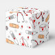Nurse Love Print Party Favor Box avec Casquette infirmière, stéthoscope cardiaque, bande et médicaments sur un Arrière - plan blanc.