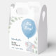 Present your tokens of gratitude in style with our charming "Oh Boy" Elephant Balloon Eucalyptus Baby Shower Favor Boxes! These delightful boxes feature a sweet baby elephant surrounded by lush eucalyptus greenery and cheerful blue balloons, all accentuating the joyful "Oh Boy!" announcement. They're the perfect way to package small gifts or treats, beautifully tying your baby shower theme together from start to finish.