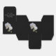 Personnalisez les jolies orchidées blanches sur le Ballotin de mariage d'hiver noir avec les noms de la date de la mariée et du marié et remplir avec vos faveurs de fête ou petits cadeaux pour votre fête de fiançailles, douche nuptiale ou invités mariages. Ces élégants ballotins botaniques personnalisés présentent une photo florale de fleurs d'orchidées de phalaenopsis blanc sur la tige avec un arrière - plan noir.