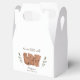 Ballotin baby shower de jumeaux mignon et rustique avec illustration de deux bébés ours. Le texte dit "on peut attendre !"
