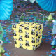 Boîte de fête en jaune dans un style à emporter avec un joli imprimé de panda de dessin animé. Customisez cet article et ajoutez votre propre texte ou achetez tel quel et ajoutez un joli ruban.