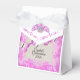 De magnifiques papillons roses et un ballotin de tiare sont une façon fantaisiste de dire merci à vos invités de Quinceanera. Les papillons, la parties scintillant numéro 15, et la tiara peuvent être facilement redimensionnés et repositionnés sur un cadeau de remerciement.