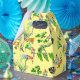 Le design coloré présente un éventail d'oiseaux tropicaux aquarelles, fleurs et plantes sur arrière - plan jaune clair