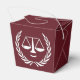 Fête de l'anniversaire d'un avocat créatif ou de la remise des diplômes de l'école de droit favorise l'utilisation d'échelles de justice drôles sur l'arrière - plan marron.