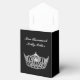 Boîte de réception en noir avec un accent ruban blanc avec un imprimé de couronne de reines de concours. Customisez cette zone et changez le texte en fonction de vos besoins.