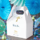 Une belle conception présentant une aquarelle bleue avec des accents de parties scintillant dorée et un script écrit. Un design élégant idéal pour le baptême de bébé garçon. Les articles de papeterie et la décoration correspondants peuvent être vus dans la collection de ce design.
