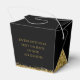 Elégante mini boîte à emporter avec poignée métallique boîte de faveur avec bordure parties scintillant or jaune et confetti saupoudrent sur un arrière - plan noir avec texte de remerciement personnalisé, parfait pour un anniversaire moderne et chic, bat mitzvah, Quinceañera, douche nuptiale, baby shower ou fête de bachelorette. Cliquez sur CUSTOMISER PLUS loin pour modifier les polices, les couleurs et la disposition afin de créer un ballotin personnalisé amusant et unique pour vos invités de fête.