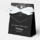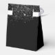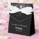 Un élégant arrière - plan noir décoré de faux éclats d'argent. Avec le texte : Mariage et Merci écrit avec un script de style à la main moderne. Personnalisez et ajoutez vos noms et la date.