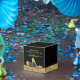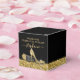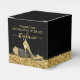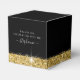 Elégante boîte de carré personnalisée avec parties scintillant d'or talon haute chaussures et une bordure en faux or jaune parties scintillant avec des confettis saupoudrés sur un arrière - plan noir avec texte de remerciement personnalisé, parfait pour un anniversaire moderne et chic, bat mitzvah, Quinceañera, douche nuptiale, baby shower ou fête de bachelorette. UTILISEZ LE DESIGN MODÈLE EDITOR pour modifier les polices, les couleurs et la disposition afin de créer un ballotin personnalisé amusant et unique pour vos invités de fête.