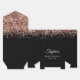 Créez vos propres ballotins de tente minimaliste Sweet 16 ans. Une calligraphie classique et élégante associée à une police serif casquette. L'art numérique de glam parties scintillant en or faux rose s'imprime comme une photo sur ces boîtes. Customisez l'arrière - plan noir et les couleurs de police blanches pour créer votre propre pour sa célébration spéciale.