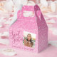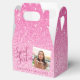 Un chic et mignon bubblegum rose faux brillant parties scintillant Sweet 16 ballotin avec texte personnalisé pour son nom et date de fête ou anniversaire et pour ajouter votre propre image ou photo. Avec l'éditeur de Modèle de l'outil de conception, vous pouvez modifier toutes les polices et les couleurs, modifier la conception, modifier le recadrage ou le placement de la photo et ajouter du texte au verso de la petite boîte de fête du 16e anniversaire.