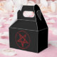 Pentagramme rouge, inversé, texturé en cercle, sur arrière - plan noir. Symbole occulte 666