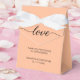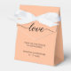 Personalized these favor boxes with the bride and groom's names, special message and wedding date. Elegant, simple and chic with in a modern script font for the word that says it all "Love". (see other bow color options). Peach favor boxes.