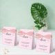 Personnalisé ces ballotins roses avec les noms de la mariée et du marié, message spécial et date du mariage. Élégant, simple et chic avec une police de script moderne pour le mot qui dit tout "Amour". (voir les autres options de couleur arc).