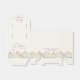 Ballotin de douche bébé boho couleur crème pâle avec "merci" et "un petit fleur sauvage est en route" en typographie grise et un script de lavande élégant, aquarelles de fleurs sauvages violet, rose, pêche et jaune et un papillon violet. Personnalisez le nom et la date de la douche de la mère en lavande simple et en typographie grise.