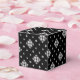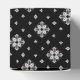 Des petits flocons de neige blancs et des cristaux de neige sur un arrière - plan noir confèrent à cette boîte cadeau une belle et spectaculaire atmosphère. Moderne, un peu Goth, et parfait pour vos cadeaux de vacances.