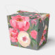 Élégantes pivoines roses à l'aquarelle et feuillage sur fond gris charbon (ou n'importe quelle couleur de votre choix), ces boîtes de faveur de style à emporter sont belles pour un mariage printanier ou estival, une douche de mariée ou toute autre occasion.