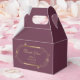 Celestial Plum Gold Sun Moon Astronomy Wedding Favor Boxes présente un élégant soleil doré, une lune et des étoiles avec un cadre doré sur un arrière - plan de prune. A l'intérieur, il y a vos informations de remerciement de mariage personnalisées. Conçu par Evco Studio www.zazzle.com/store/evcostudio