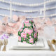 Ballotin en pivoines roses douces, parsemé d'un vert foncé, arrière - plan de feuilles