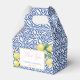 Ballotins élégants avec un motif vintage en tuiles Bleues Blances, citrons aquarelles peints à la main et police calligraphie.