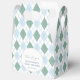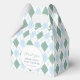 Design ballotin à thème de golf avec un Jacquard en diamant bleu et vert imprimé arrière - plan, balle de golf et texte sur l'avant et voiturette de golf sur l'arrière. Montré ici pour un baby shower mais tout le texte peut être personnalisé à votre événement (vous pouvez également ajouter ou supprimer des champs de texte à l'intérieur de l'outil de conception) et fonctionnerait également bien pour un wedding shower ou un anniversaire de jalon.
