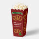 Une version de vacances donne un tour à ce thème amusant bretzel, dans les couleurs de Noël rouge foncé et vert. Le motif du snack a un peu de sainte supplémentaire pour l'ambiance festive. Ajoutez votre propre texte personnalisé aux trois champs personnalisés pour créer quelque chose qui correspond à votre événement de fin d'année, fête de fin d'année ou autre fête de décembre.