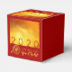 Design moderne avec texture dorée image avec grand 2020 en rouge + petit papier coupé en Rat + Idéogramme en Rat avec textes jaunes BONNE ANNÉE et Année du Rat sur un arrière - plan rouge. Conception sur ballotin cube classique avec arrière - plan rouge. Carte de voeux, invitations et plus encore... Parfait pour un Nouvel An chinois moderne et intemporel du Rat 2020.