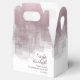 Ce ballotin mariage moderne "Merci" a une atmosphère chaleureuse et personnelle et présente un design d'aquarelle abstrait qui ressemble à des reflets sur l'eau. Cet exemple présente une palette de couleurs de dégradé allant du rose doux au mauve foncé. Customisez avec les noms de la mariée et du marié et un message de remerciement personnel en utilisant le modèle fourni. Recherchez ID774 pour voir l'ensemble complet de correspondances et les options de couleurs supplémentaires.