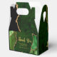 Ce sac de remerciement de mariage élégant et glamour présente un fond en marbre d'agate verte avec des accents de paillettes en faux or. Le texte combine une écriture manuscrite et des polices sans serif modernes pour un look classe et sophistiqué. Cela sera parfait pour les mariages d'automne et d'hiver.