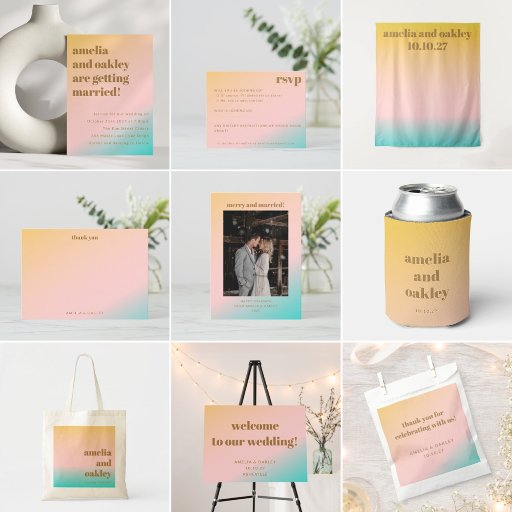 Retro Beach Vibes Pastel Gradient WeddingConçu par Opal Ellery