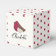 Robin simple et élégant et coussin Red Bow. Design moderne propre avec Robin et voeux de Noël à l'avant. Au contraire, il y a un arc rouge et un espace pour customiser par le nom et le sentiment. Les autres côtés de la boîte sont couverts en pois.