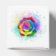 Grand rose fleuri avec pétales arc-en-ciel sur arrière - plan blanc, peint sur des éclaboussures de peinture colorée et lumineuse. 3d