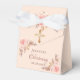 Un arrière - plan rose en or. Décoré de fleurs d'or rose et rose, d'herbe de pampas et d'une croix dorée. Avec le texte : Christening écrit avec un rose moderne couleur foncé écriture de style écrit à la main. Personnalisez et ajoutez un nom et une date.