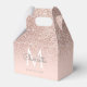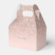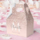 Jolie rose dorée pailletée, nom en écriture élégante et monogramme sur un fond rose blush pour boîte de faveur. Conçu par Thisisnotme©