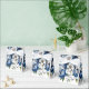 Un bouquet de fleurs magnifiquement illustré. Les fleurs sont principalement dans les tons bleu roi, blanc et beige, avec des détails complexes mettant en valeur les pétales, les étamines et les feuilles. Le bouquet est placé de façon centrale, et les fleurs semblent être disposées en cascade, avec des feuilles et des fleurs plus petites qui regardent de part et d'autre. La palette de couleurs globale est douce et apaisante, l'arrière - plan blanc offrant un contraste saisissant avec les fleurs vibrantes.