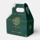 Royal Emerald Green Gold Ornate Mariage Ballotins de Merci. Ces Boîtes Royal Emerald Green Wedding Favor sont une touche d'opulence pure ! L'avant présente une toile de fond verte émeraude regale ornée de détails dorés complexes. Vous trouverez les noms du couple élégamment écrits en or, ainsi que la date du mariage. Le dos reflète cette élégance avec un arrière - plan vert émeraude assorti et des détails ornés. Un message "Merci" chaleureux est affiché dans une typographie florale audacieuse, ajoutant une touche de charme romantique. Ces boîtes sont parfaites pour ajouter une touche de luxe et de sophistication à vos faveurs de mariage, créant une expérience vraiment inoubliable pour vos invités.