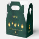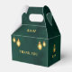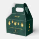 Royal Emerald Green Gold Lights Mariage Merci Ballotins Ces Royal Emerald Green Wedding Favor Boxes sont une touche de magie! L'avant a un bel arrière - plan vert émeraude avec des lumières dorées scintillantes au-dessus, lui donnant une sensation magique. Vous trouverez les noms du couple élégamment écrits, ainsi que la date du mariage. Le dos est également vert émeraude, orné de la même lumière dorée enchanteresse, et d'un doux message de "Merci". Sur le côté, on trouve un charmant monogramme des initiales du couple. Ces boîtes sont parfaites pour ajouter une touche d'élégance et de luxe à vos faveurs de mariage, créant une expérience vraiment inoubliable pour vos invités.