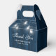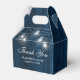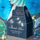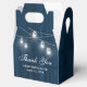 Mariage rustique en bois bleu marine merci ballotin avec lumières en pot de mason sur un arrière - plan en bois de grange.