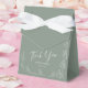 Voici notre boîte Favor de mariage minimaliste et tendance, avec une couleur verte saga sereine ornée d'un design floral simple mais élégant. La calligraphie blanche délicate ajoute une touche de sophistication à ce Ballotin de la Mer des Verts, ce qui en fait un choix idéal pour une célébration mariage moderne. Le design romantique et minimaliste présente une typographie élégante et adorable, sertie contre un arrière - plan vert mer, créant un look propre et élégant pour votre journée spéciale.