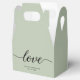 Faites de vos faveurs de mariage se démarquer avec notre Ballotin de Mariage Sage Green Modern Love Script. Ces ballotins élégants et chics sont la meilleure façon d'express votre gratitude à vos invités. La personnalisation est la clé, et vous pouvez customiser les ballotins avec les noms de la mariée et du marié, ainsi que la date de votre mariage. Chaque détail est soigneusement conçu pour rendre vos faveurs uniques et spéciales. La couleur vert sauge des ballotins ajoute une touche de sophistication et complète les différents thèmes et styles mariages. La police de script moderne pour le mot "Amour" ajoute un élément romantique et contemporain au design. Impressionnez vos invités avec ces boîtes de faveur de mariage élégantes et bien personnalisées. Votre famille et vos amis apprécieront les efforts supplémentaires que vous avez mis à faire pour rendre leur expérience à votre mariage mémorable. Ces ballotins ne sont pas seulement des conteneurs ; ils reflètent votre amour et votre appréciation pour la présence de vos invités lors de votre grand jour. Les remplir de délicieuses gâteries ou de petits cadeaux rendra le geste encore plus réconfortant. Que vous soyez en train d'avoir une mariage de jardin rustique ou une élégante décoration intérieure, ces ballotins verts sages se marient parfaitement avec votre décor mariage choisi. Notre Ballotin de Mariage Sage Green Modern Love Script ajoutera une touche de charme et de sophistication à votre réception de mariage, ce qui en fera un événement inoubliable pour tous les participants.