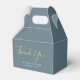 Surprenez vos invités mariages avec ces Ballotins de Merci de bleu Mariage moderne Dusty. Ce design simple a "merci" en faux or écrit manuscrit lettrage sur personnalisable arrière - plan bleu poussiéreux. Les noms des mariées et des mariées sont en caractères d'impression simple, suivis du mois, du jour et de l'année de votre mariage. Cliquez sur l'option Personnaliser le modèle et suivez les invites