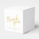 Script moderne Blanc et Gold Wedding Favor boîte cadeau avec titre "Merci" en or police de script moderne avec nom et date dans la police sans serif moderne sur arrière - plan blanc. Remarque : Les détails du papier sont simulés dans l'illustration. Il n'y aura pas de métal sur ce produit.