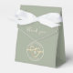 Simple, élégant, minimal, moderne mariage vert sauge merci ballotin avec monogramme et coeur de corde or.