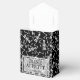 Skeletons sur un arrière - plan noir et votre message en lettrage chic sur le devant, vous vous amuserez avec ces boîtes de fermeture style ruban style soirée de style tentes pour les fêtes d'Halloween, mariages et plus. CORRESPONDRE des articles dans notre magasin.