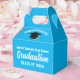 Ce ballotin moderne de la fête de fin d'études supérieures en bleu ciel et blanc personnalisé vous propose le nom de votre lycée ou de l'université pour la classe de 2025. Customisez avec votre année de graduation sous l'écriture chic manuscrite et le casquette noir de grad pour un grand cadeau de maintien de diplômes personnalisés.