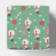 Snowmen in scarves and top hats, interspersed with red Christmas ornaments and white, round snowflakes creates a cute and charming gift box with a vintage look.