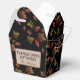 Sparkly leaves Thanksgiving leftovers Custom text Favor Boxes. Shiny bronze, gold, marsala and red glitter sparkles seasonal falling leaves foliage pattern. *please note we use photos of sparkles not actual glitter*