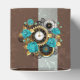 Ballotins Steampunk Clock and Turquoise Roses on Striped