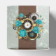 Ballotins Steampunk Clock and Turquoise Roses on Striped